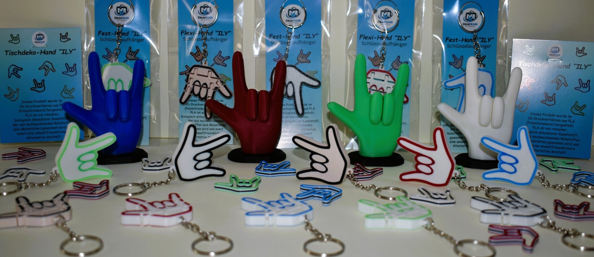 Unsere Hand 'ILY' Schlüsselaufhänger, Tischdeko, 3D-Hand sind mehr als nur praktische Alltagshelfer. Sie sind ein Symbol für Kommunikation und Zuneigung, liebevoll in 3D gedruckt. Jeder Aufhänger wird mit Präzision und Sorgfalt in Freiburg gefertigt, um höchste Qualität und Langlebigkeit zu gewährleisten. Entdecken Sie die verschiedenen Farben und machen Sie Ihr Zuhause einzigartig. Ideal als persönliches Statement oder als herzliches Geschenk.