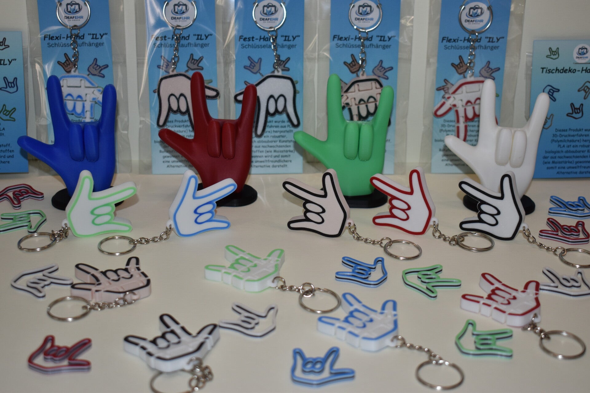 Willkommen bei DeafEHR 3D-Druck! Entdecken Sie unsere Hand "ILY"-Schlüsselanhänger; Tischdeko, 3D-Hand – mehr als nur ein Accessoire, ein Symbol für Identität, Gemeinschaft und Liebe. Wir sind stolz darauf, Produkte zu schaffen, die die Welt der Gehörlosen repräsentieren.